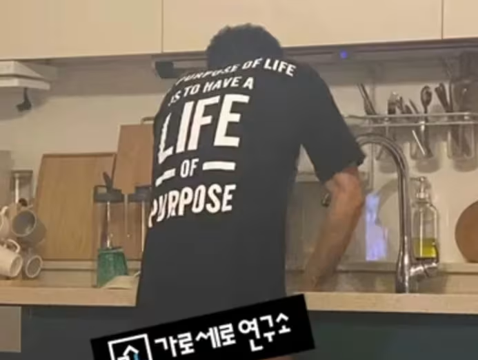 韩国YouTube频道Garosero研究所(又称Hoverlab)近日曝光了一张照片,显示韩国演员金秀贤在已故女演员金赛纶的家中,身穿T恤、未穿裤子,在水槽前洗碗。